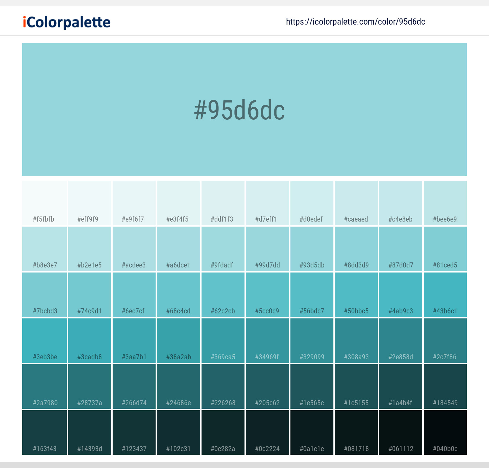 The hexadecimal color code color number for Arctic Blue 2050-60 is C4E3E1 and the RGB color code is. Web Color space information Arctic Blue Color 95d6dc.